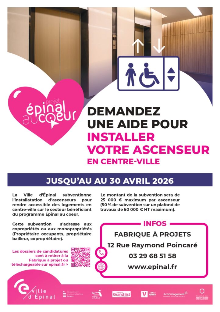 La Ville d’Épinal soutient les propriétaires du centre-ville dans l’installation d’ascenseurs pour rendre les logements plus accessibles. Profitez de cette subvention jusqu’au 30 avril 2026.