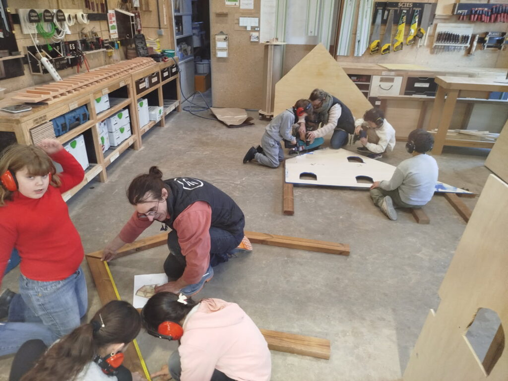 D’autres cabanes sont en cours de fabrication dans le cadre du dispositif de l’Aménagement du temps de l’enfant (ATE) par les enfants de l’école de la Loge Blanche, au sein du Xylolab à Épinal, un espace proposant des ateliers collectifs pour créer des objets en utilisant le bois comme matériau principal.