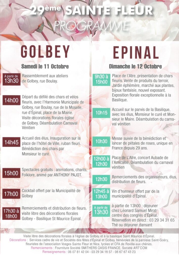 Les festivités débuteront aux ateliers de Golbey ce samedi 11 octobre dès 13h30 avec un défilé de chars et vélos fleuris ainsi que la déambulation du Carnaval Vénitien puis plusieurs spectacles gratuits dans la ville.