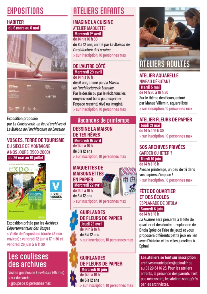 Chaque année, la Filature propose une exposition historique créée par les archivistes, mais elle accueillera également d’autres expositions tout au long de l’année.